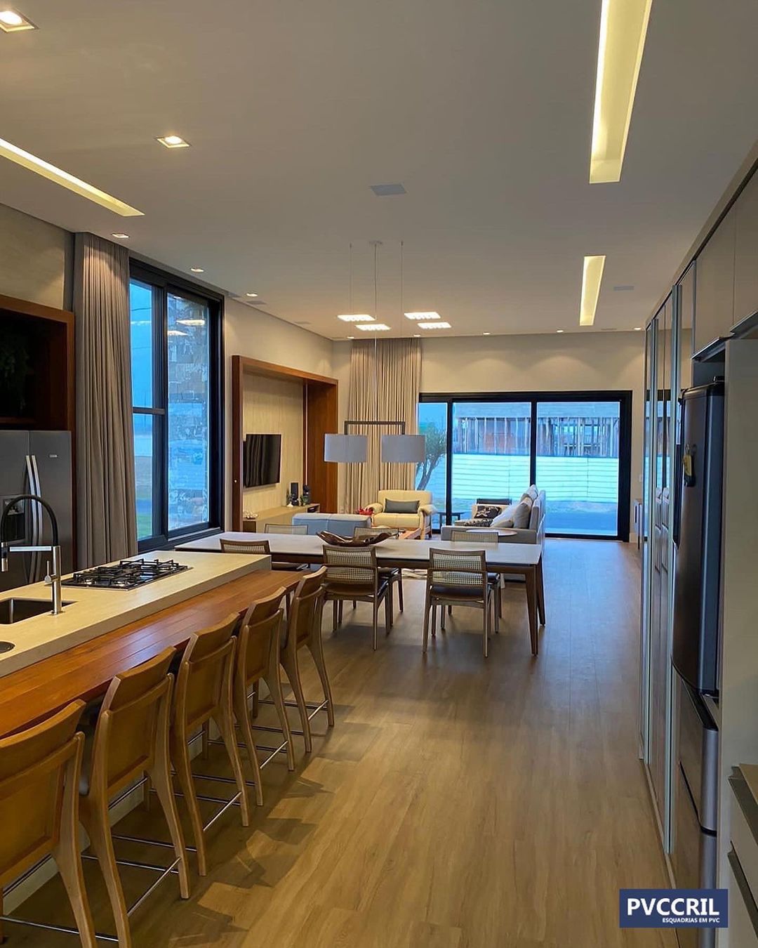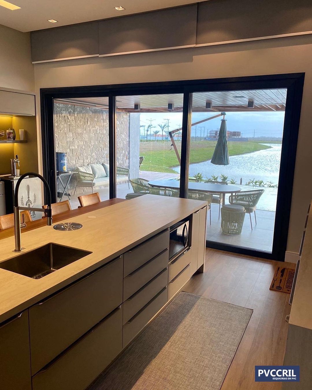 Projeto arquitetônico Condomínio Águas do Atlantico contendo portas e janelas de correr com 2 e 3 folhas e quadro fixo